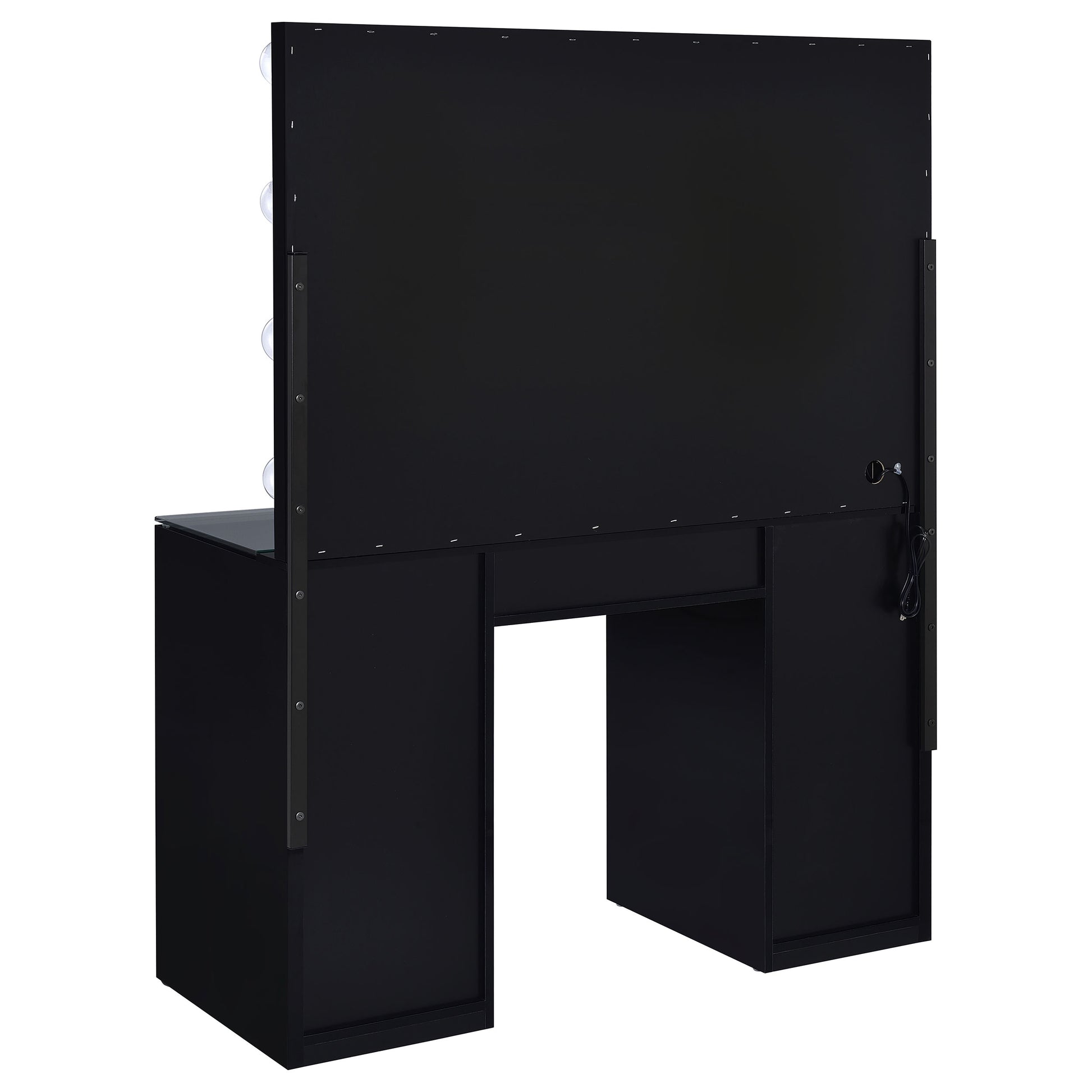 Acena 7-drawer Vanity Set with Lighting Black High Gloss