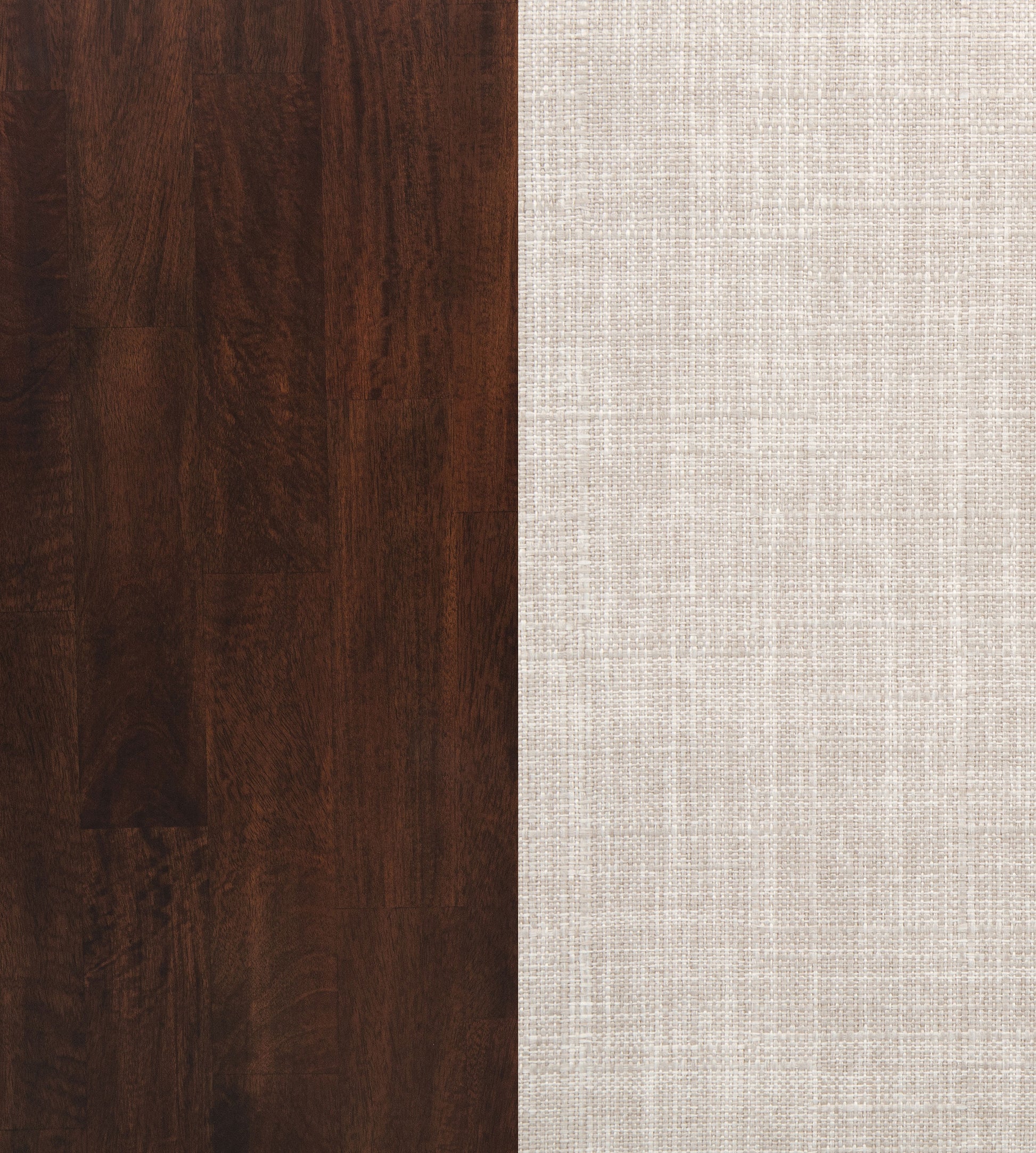 • Crafted from solid rubberwood, mango veneer, engineered wood, and fabric