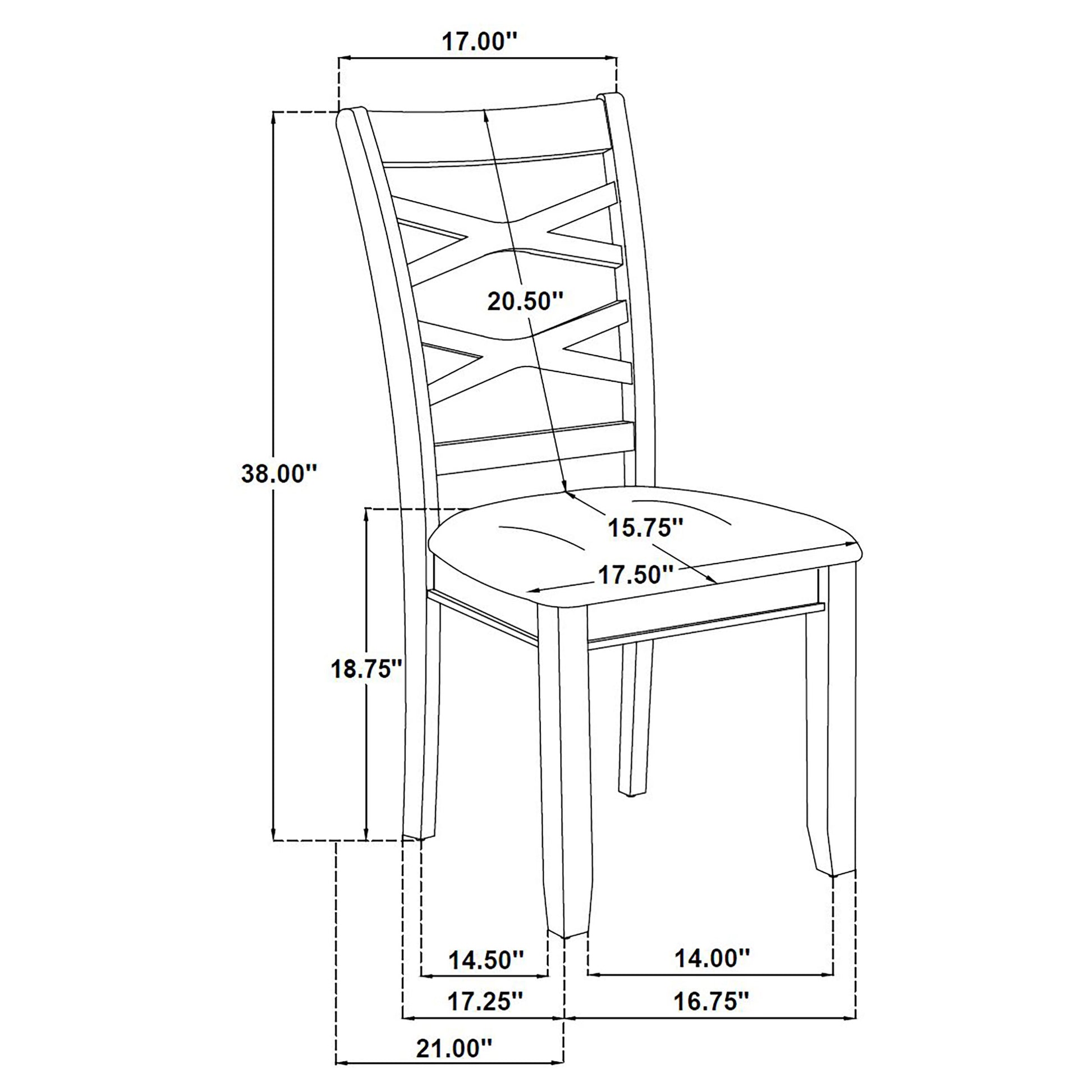 • Five-piece dining set with round table and four cross-back upholstered dining chairs