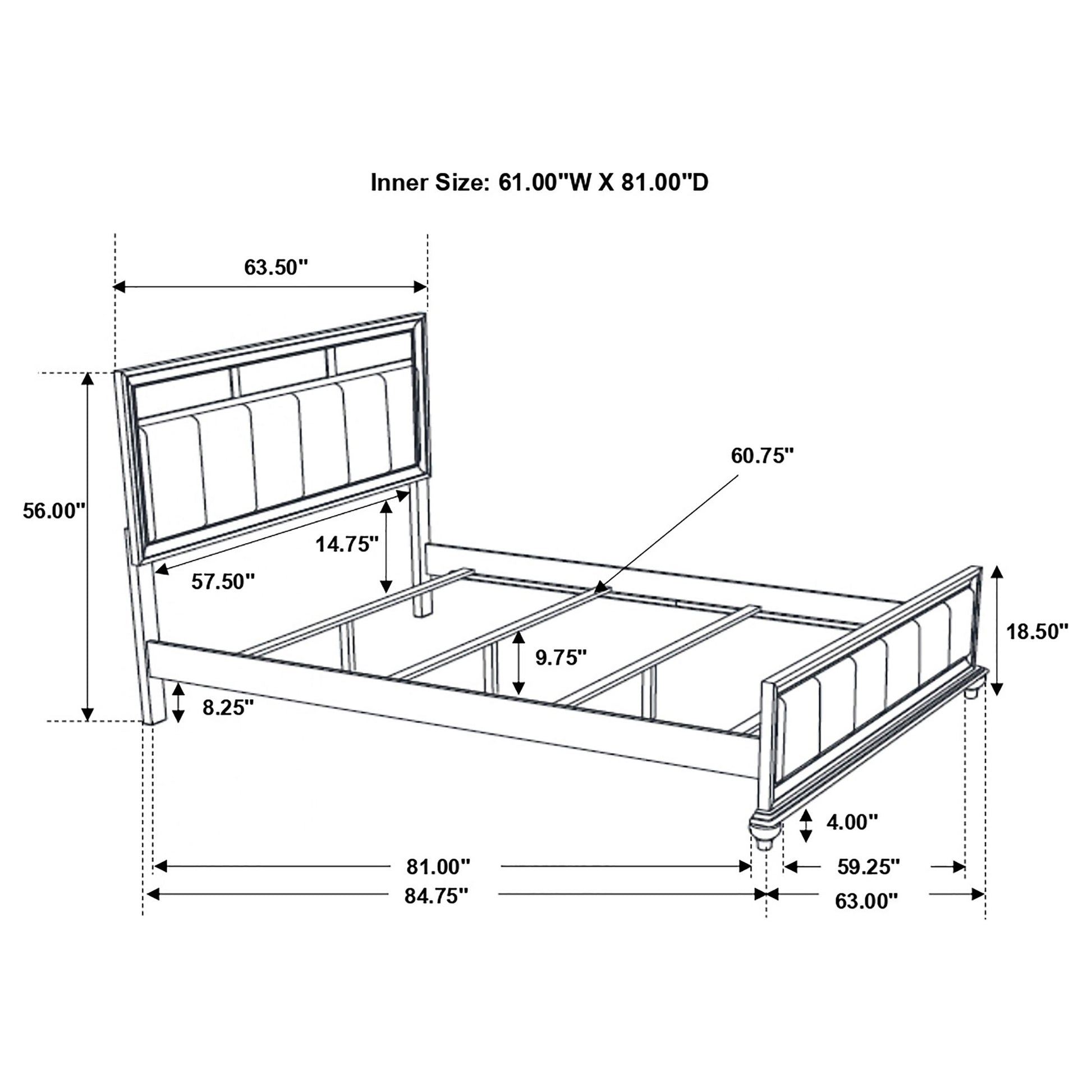 • Queen panel bed with white finish and glamorous metallic leatherette panels