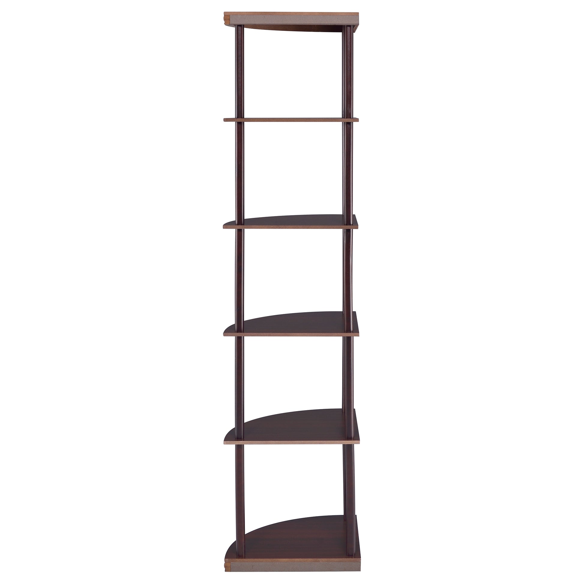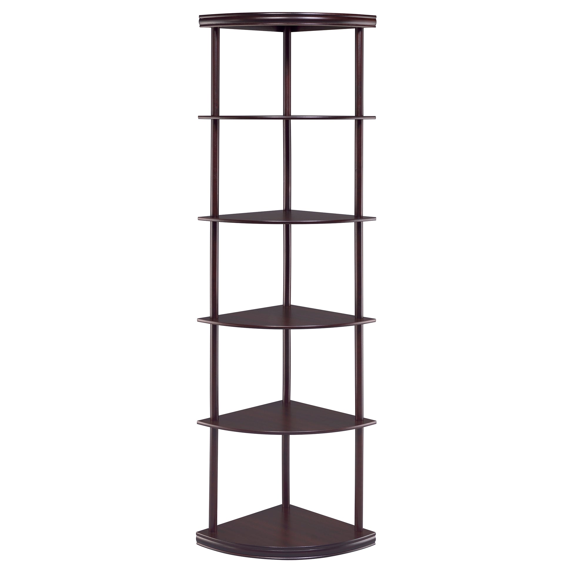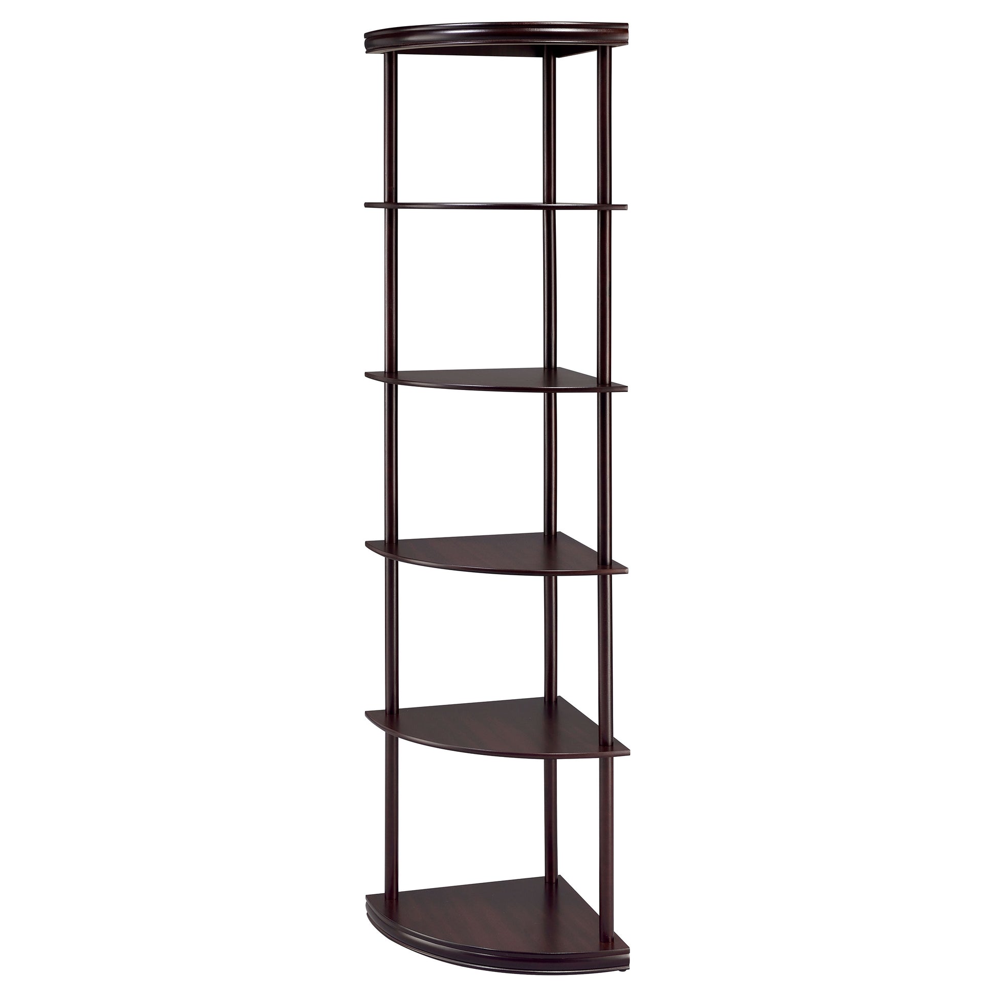 • Five-tier corner shelf with curved shelves and rich cappuccino finish