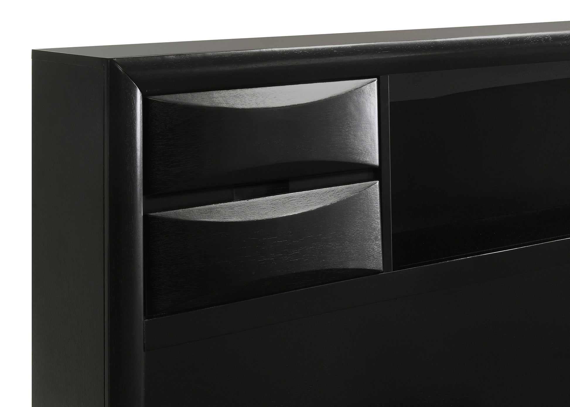 • Four headboard drawers and open shelves for easy access storage