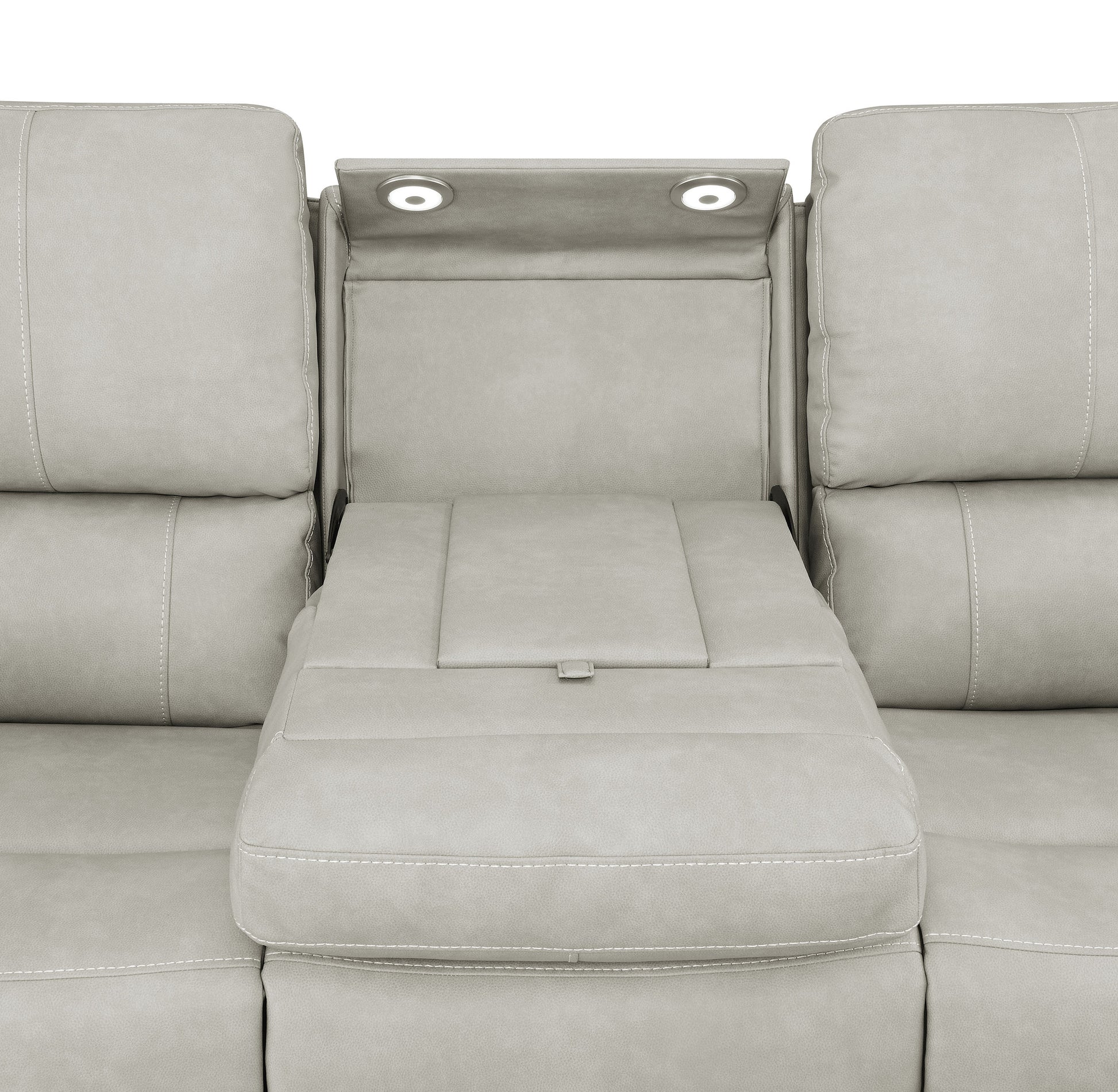 A sanctuary of comfort and thoughtful design, this zero gravity triple power reclining sofa turns the everyday into something extraordinary. Upholstered in soft leatherette with contrast stitching, its sculpted silhouette offers both structure and serenity. Sink into deep, supportive cushions while power recline, headrest, and lumbar settings respond with effortless grace. A drop-down console reveals hidden storage and ambient LED lighting, while the sleek control panel—complete with dual USB ports—keeps everything within reach. Even in moments of stillness, a rear power connection and emergency battery option ensure comfort never loses power.