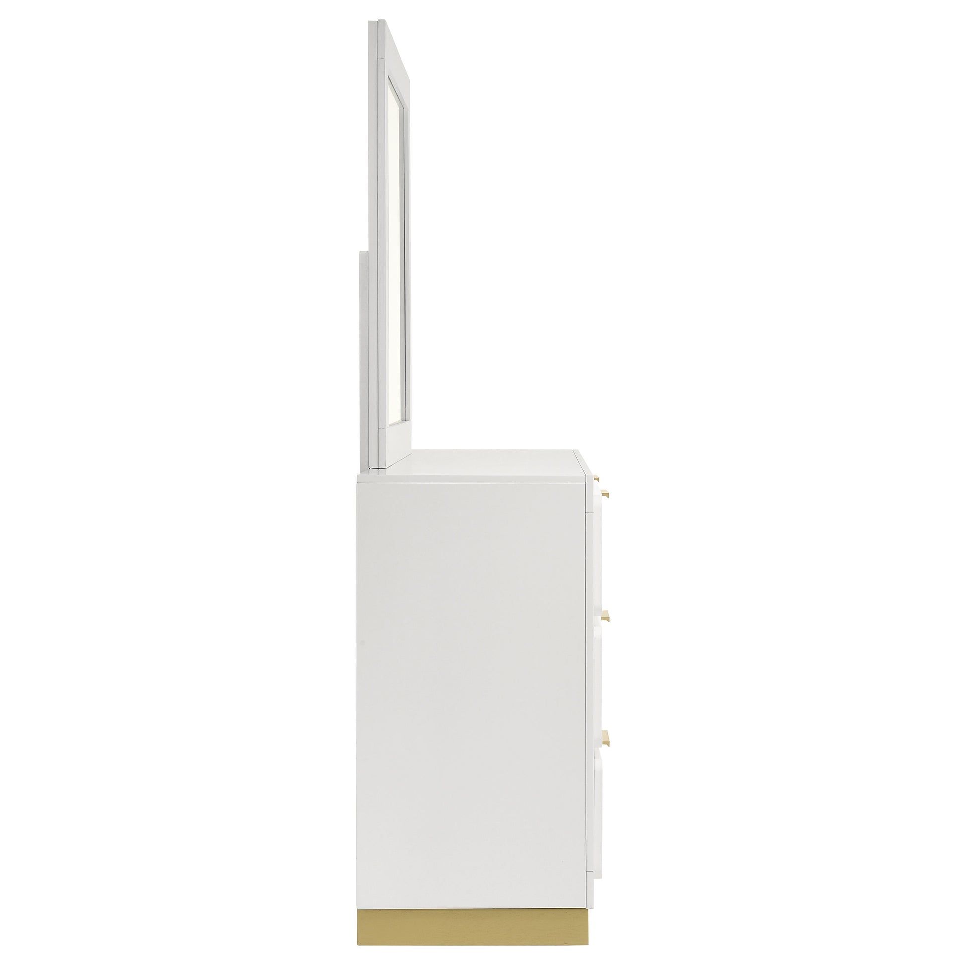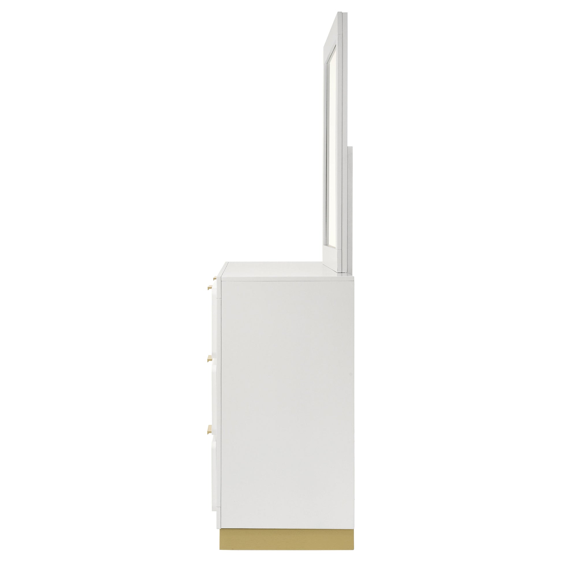 Unveil the essence of minimalism and modern luxury with our sleek six-drawer dresser and matching mirror, a perfect addition to both master and guest bedrooms. The clean lines and Mid-Century Modern flair of the dresser blend seamlessly with its straight handles and matching base, offering spacious storage with a refined aesthetic. Its smooth center glides ensure functionality without compromising on style. The accompanying mirror, framed with the same care and precision, extends the look upward, adding height and elegance to your space. This duo, versatile and sophisticated, pulls together a statement-making ensemble that transcends style trends with enduring simplicity.