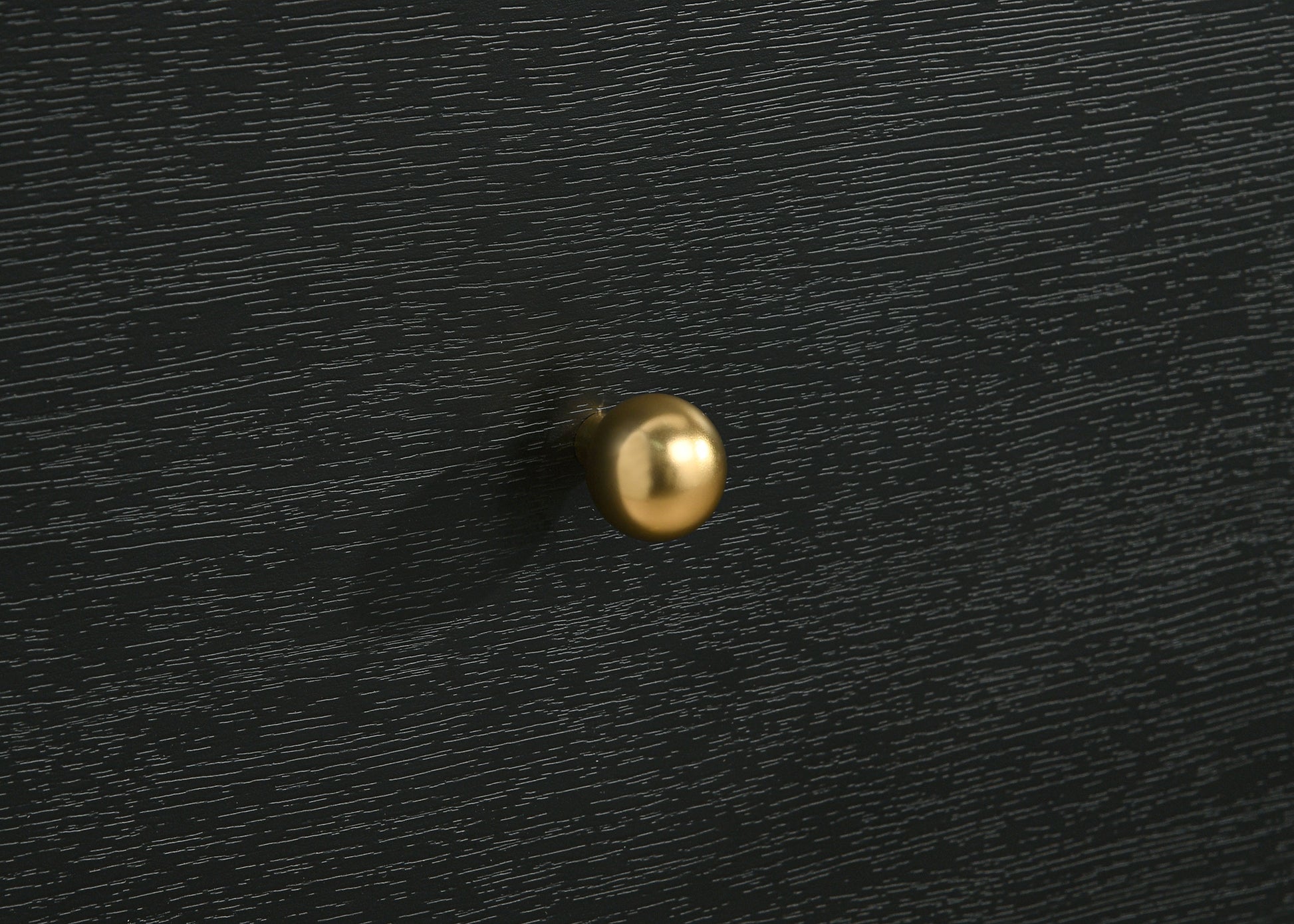• Charming petite ball knobs receive a brass finish, adding glamour and contrasting dimensionality