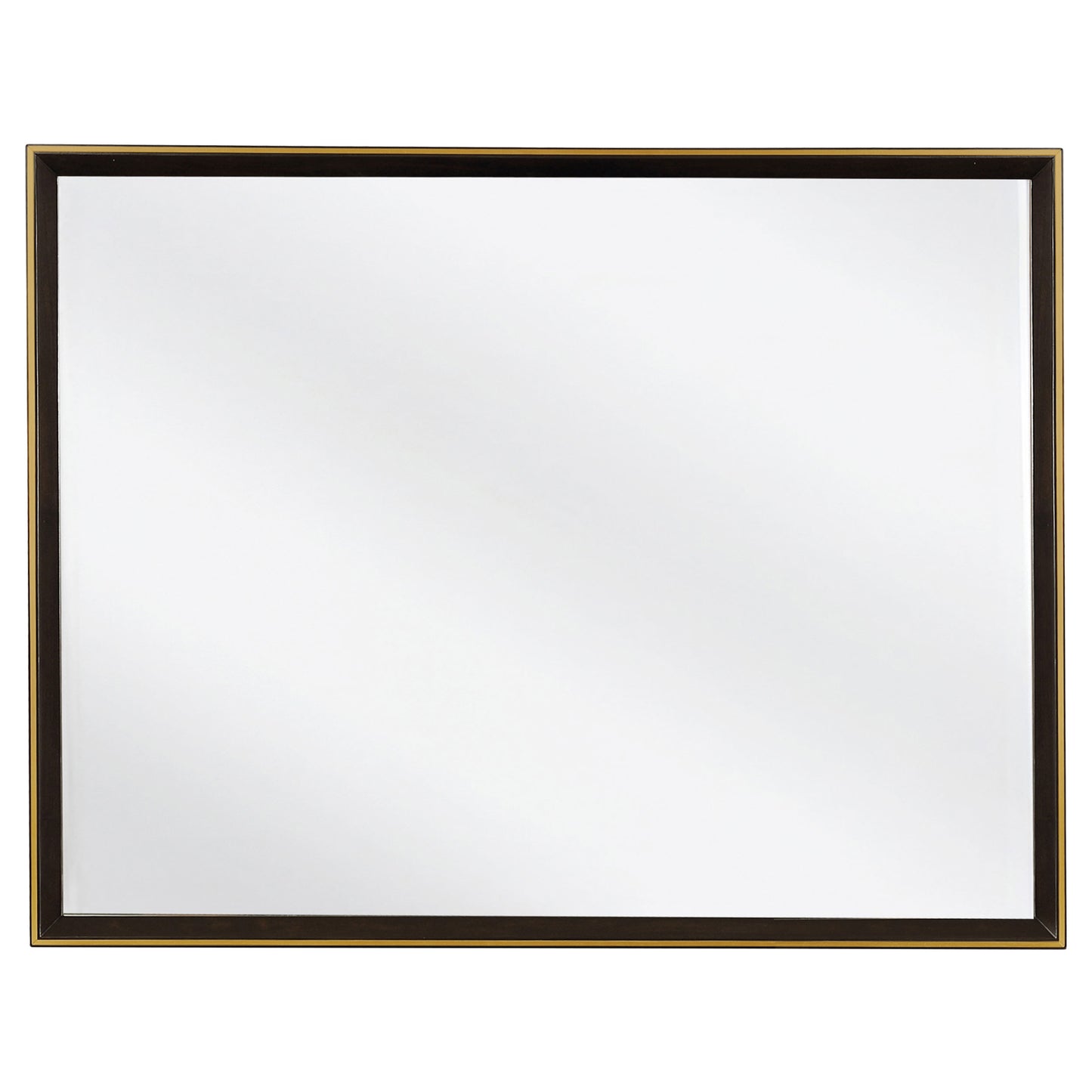 The perfect example of stunning modern design, this California king five-piece bedroom set is full of geometric details. Featuring an elongated headboard, the neutral upholstery combines with the warmth of the smoked peppercorn finish to add depth. Versatile and streamlined, this set comes with a nine-drawer dresser, two-dresser nightstand and shelf, and two-drawer chest with doors. Retro inspired details offer structure and personality. Transform your space with the openness of the clean and structured mirror.