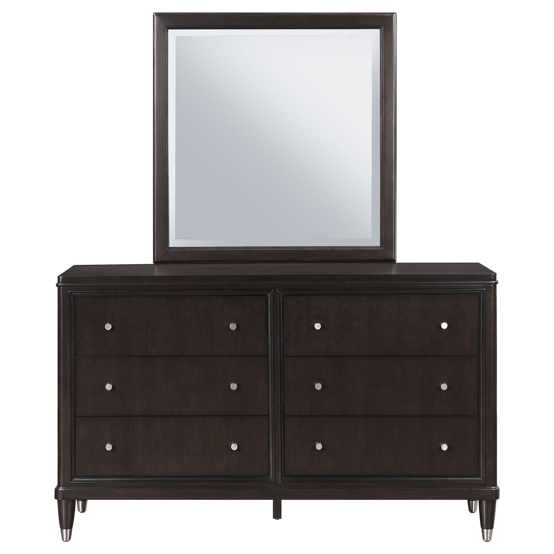 • Modern six-drawer dresser includes a mirror and offers ample storage in your bedroom