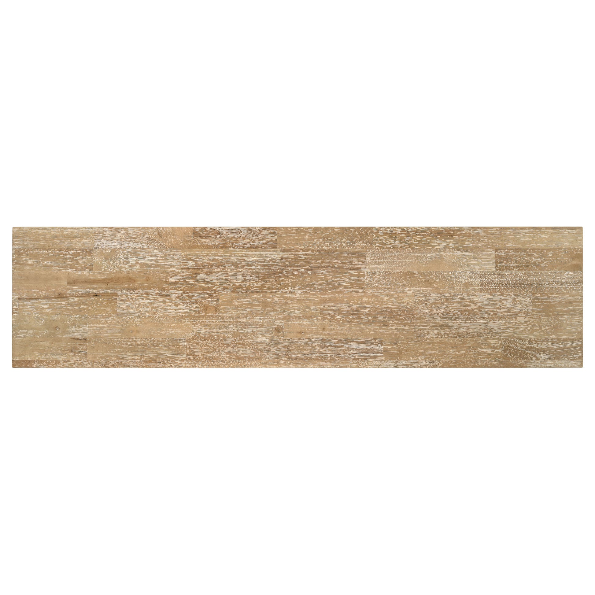 Versatility is a definite plus in the design of this charming transitional wood TV stand. Spacious and equipped with plenty of storage room, this console creates a breezy look with cottage, coastal, and farmhouse influence. A rectangular brown finish ash wood top provides a breathtaking contrast to a white finished frame. Place components in a center open space and on adjustable shelving behind two glass-front doors, and stash media and accessories in a large slide-out drawer. This all-in-one console organizes entertainment devices and accessories to make sure your media viewing is smooth and easily accessible.
