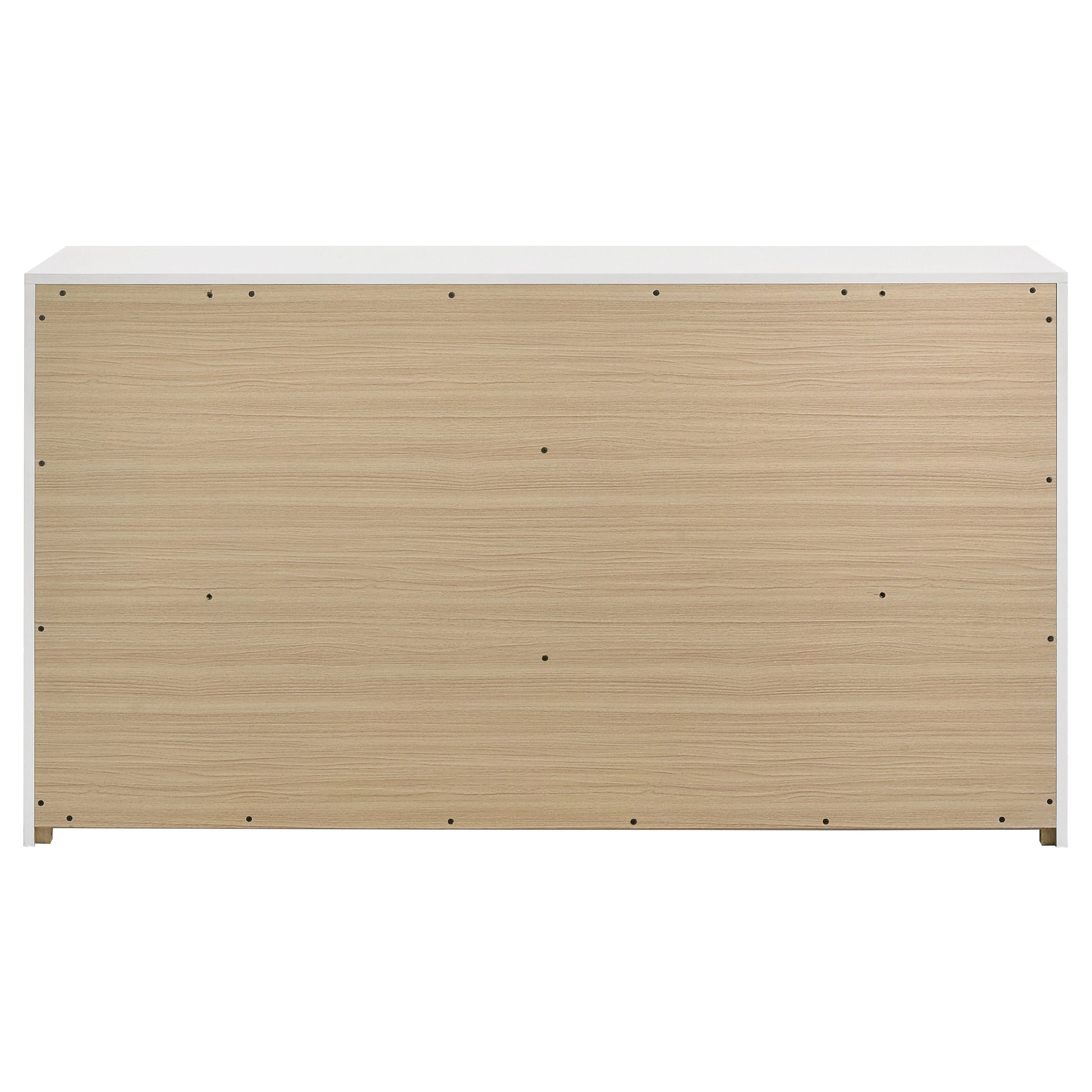 Clean and structured, this six-drawer dresser draws from Italian contemporary style to deliver bold presence and refined function. Finished in white high gloss PET thermoplastic, it offers a scratch-resistant, moisture-resistant surface that is both durable and eco-friendly. Vertically mounted polished gold pulls create a sculptural centerline across six smooth-gliding drawers, combining sleek storage with standout design.