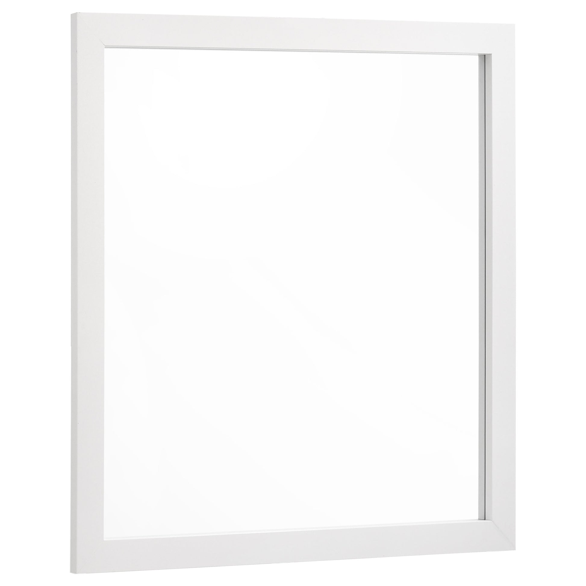• Upholstered in a bright, white leatherette throughout the platform bed frame