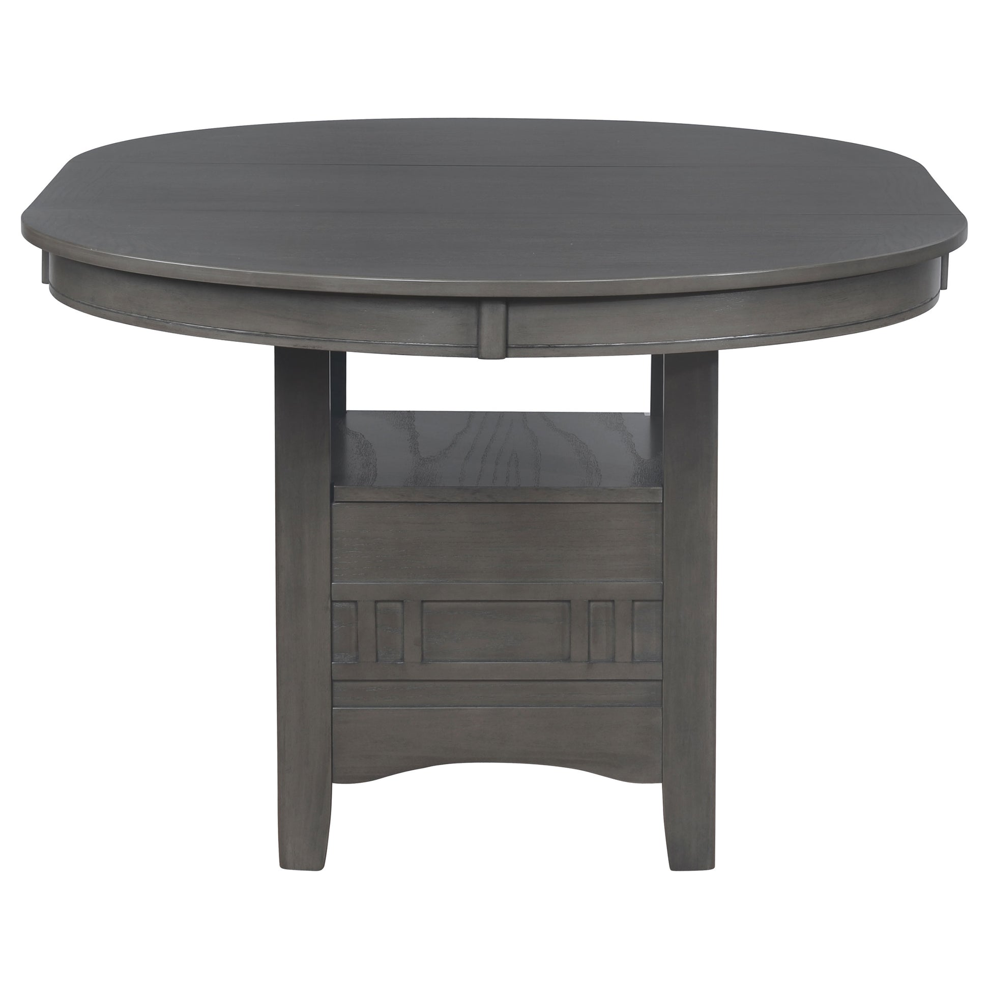 The ultimate in versatility and engaging style, this wood dining table is a perfect centerpiece in a dining room or breakfast nook. The ingenious base features both closed storage and an open shelf, creating opportunities for storage and display. A medium grey finish is a contemporary addition to rubberwood and MDF construction. The table is complete with an 18-inch extension leaf perfect for welcoming friends to gather for a meal. Clean lines are accented with arched trim that adds a pleasing hint of detail.