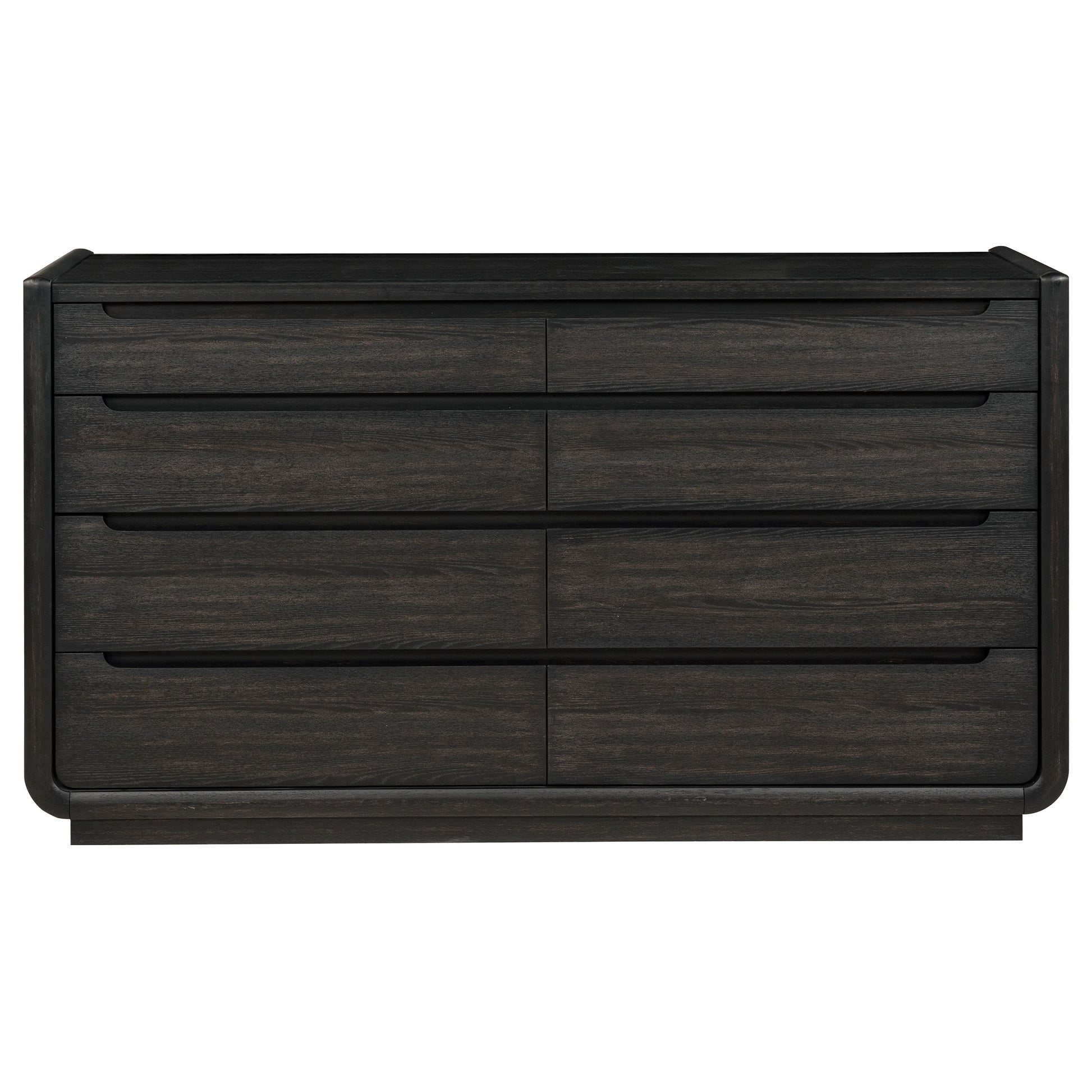 Defined by smooth curves and a rich burnished black finish, this eight-drawer dresser offers everyday functionality with refined simplicity. Its soft, rounded corners and minimalist drawer pulls speak to a modern sensibility, while black felt-lined top drawers cradle delicate pieces in quiet luxury. Soft-closing glides and dovetail joinery ensure lasting performance, while a dust panel base protects what’s tucked away. Crafted for balance and beauty, it’s both grounded and graceful.