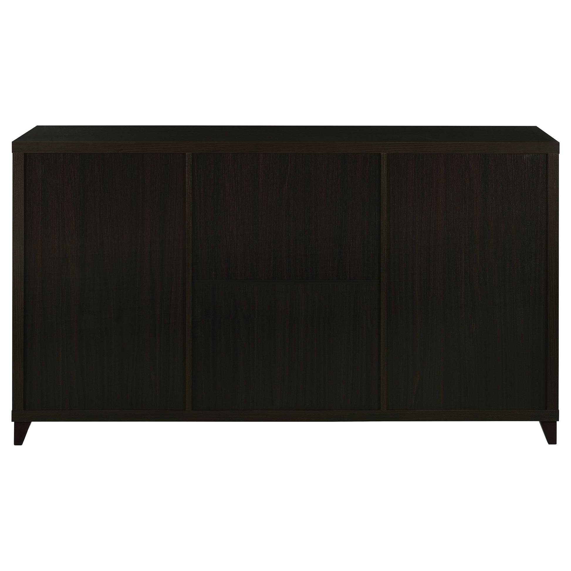 Designed for both storage and display, this 60-inch TV stand combines elegance with everyday function. Finished in rich cappuccino, it features a wide surface that supports televisions up to 65 inches. Two framed clear tempered glass doors reveal adjustable shelving for media players or decor, while three spacious center drawers provide concealed storage for movies, games, or accessories. Brushed silver hardware and tapered legs add a refined touch, making this entertainment center a stylish and practical anchor for your living room.