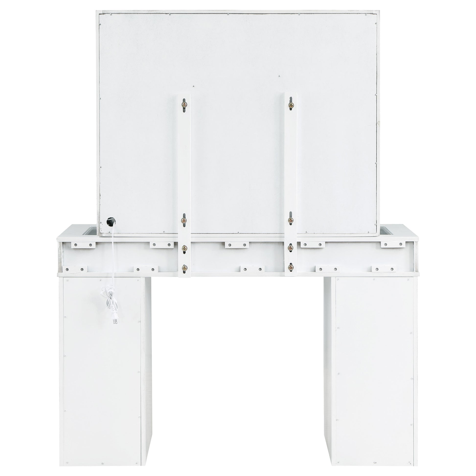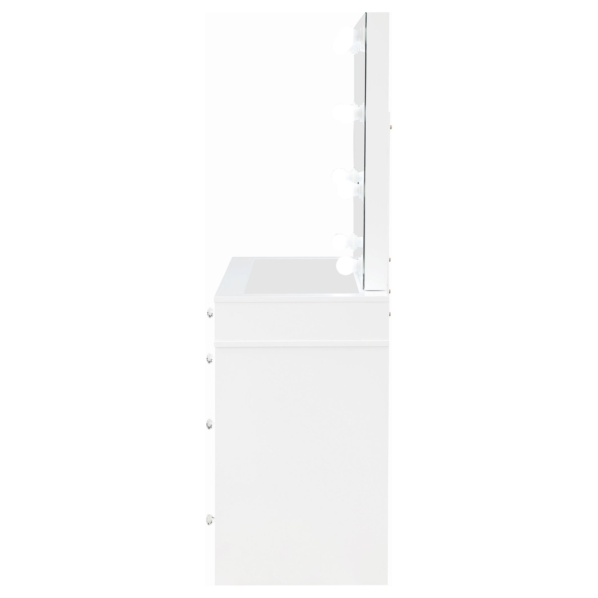 • Three-piece white finish vanity set, perfect for a modern bedroom setup
