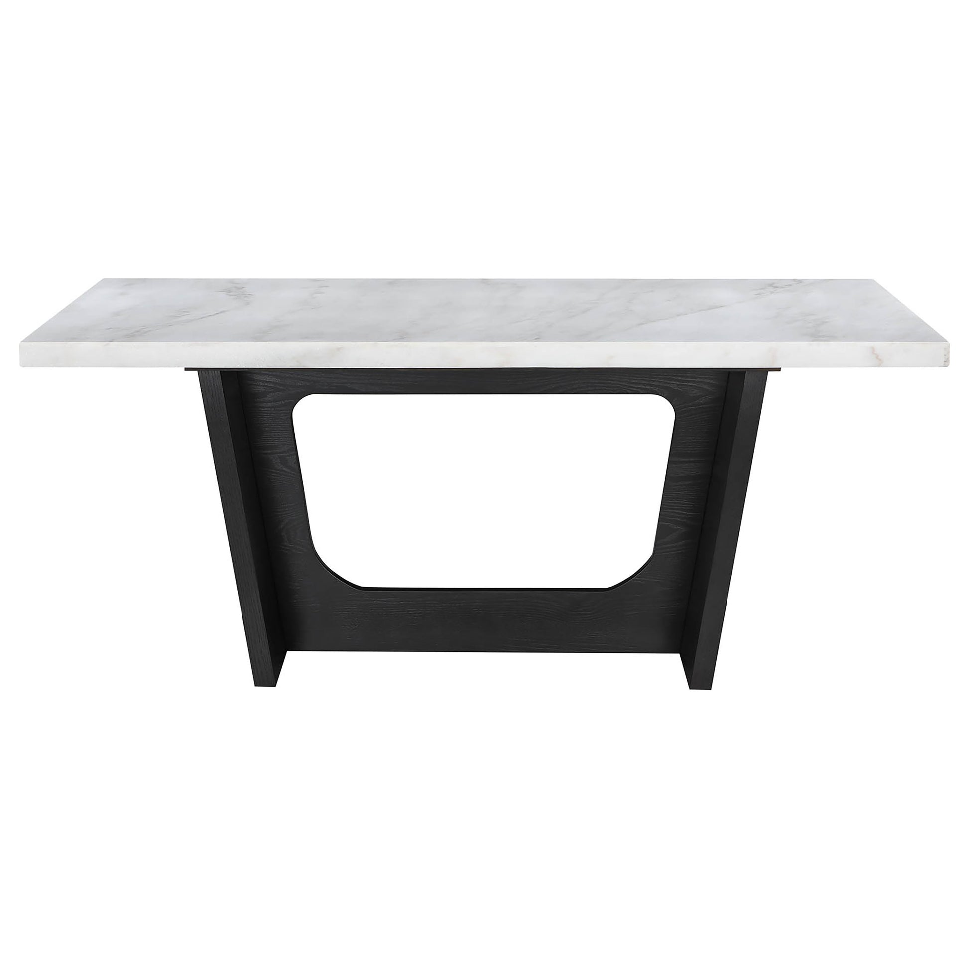 • The table is supported by an oak veneer panel base with a marble table top