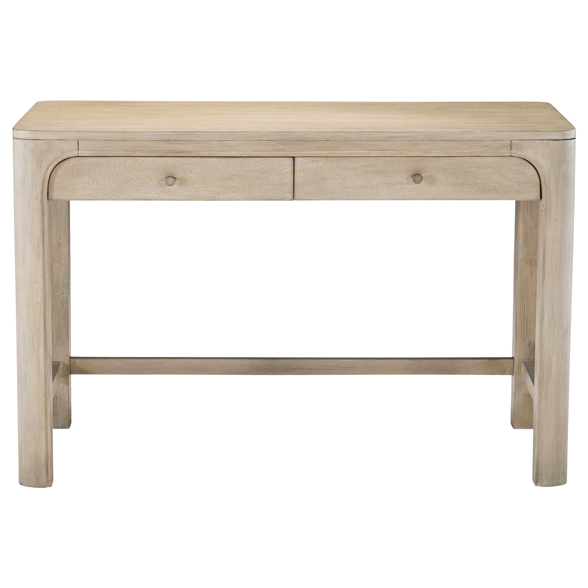 • Vanity desk with sculpted legs and curved edges for a soft, modern makeup table profile