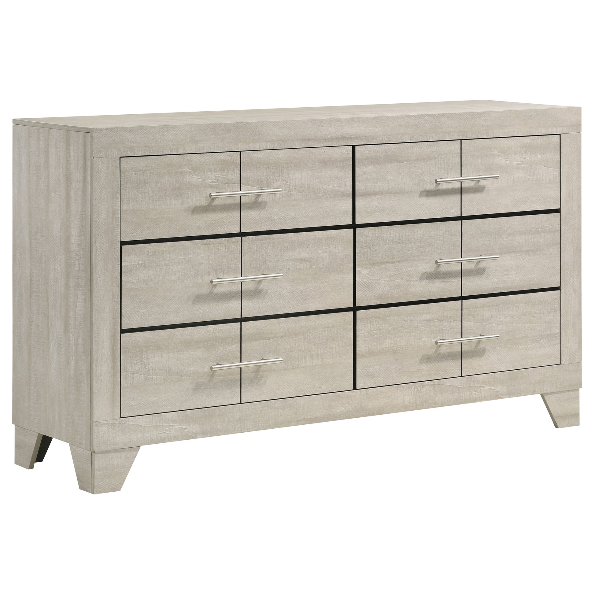 • Rustic cream finish with rough-sawn white-washed veneer for unique character